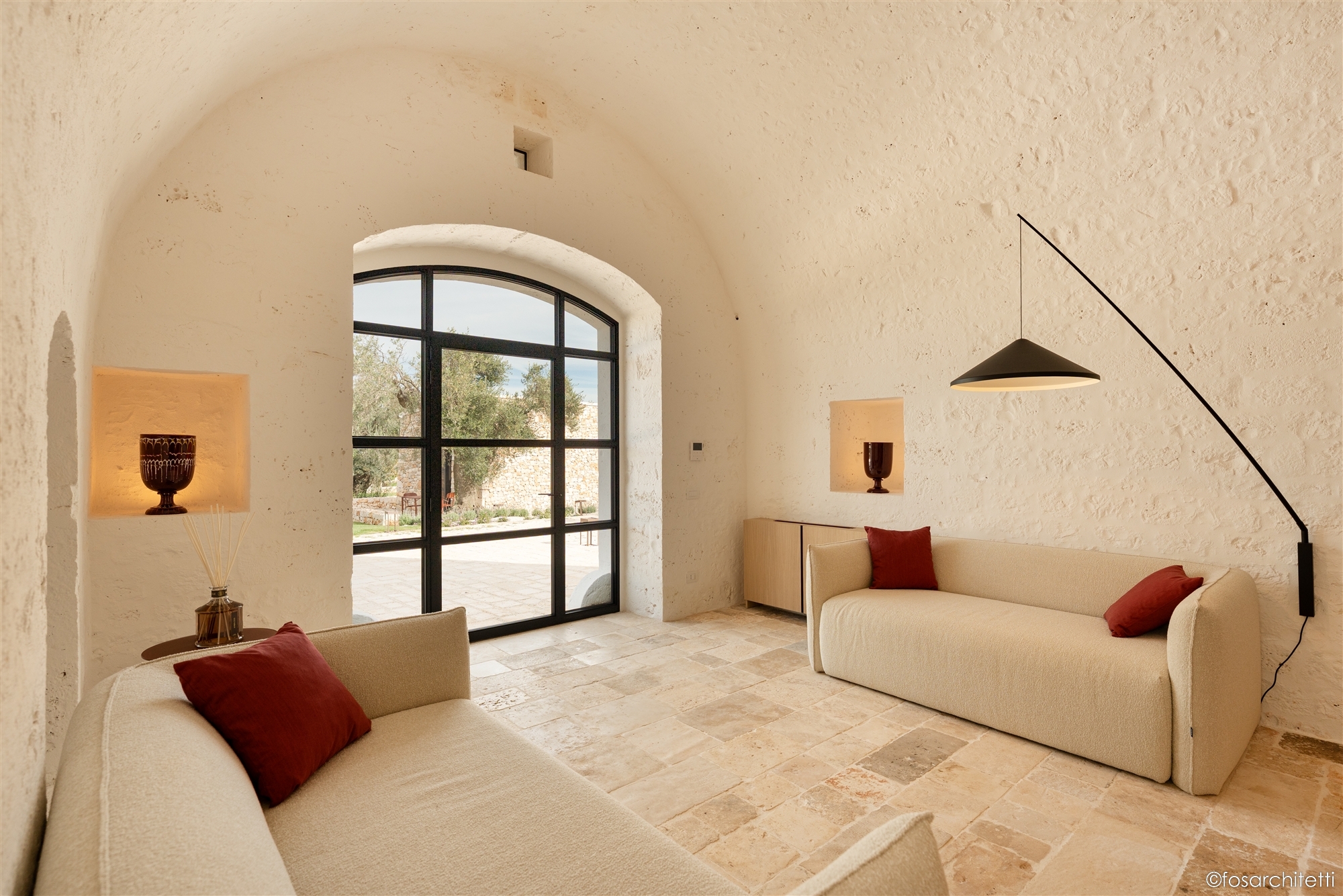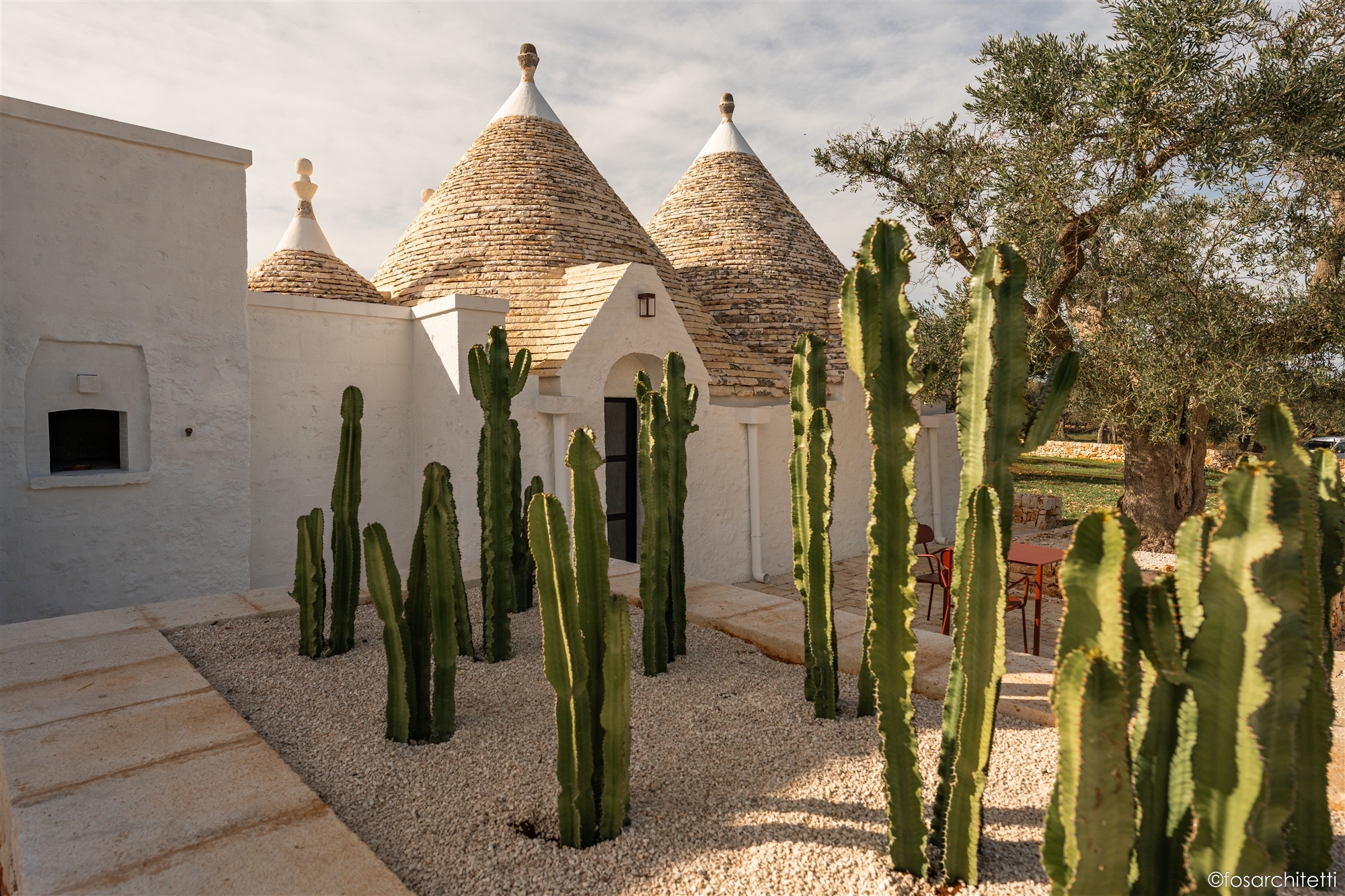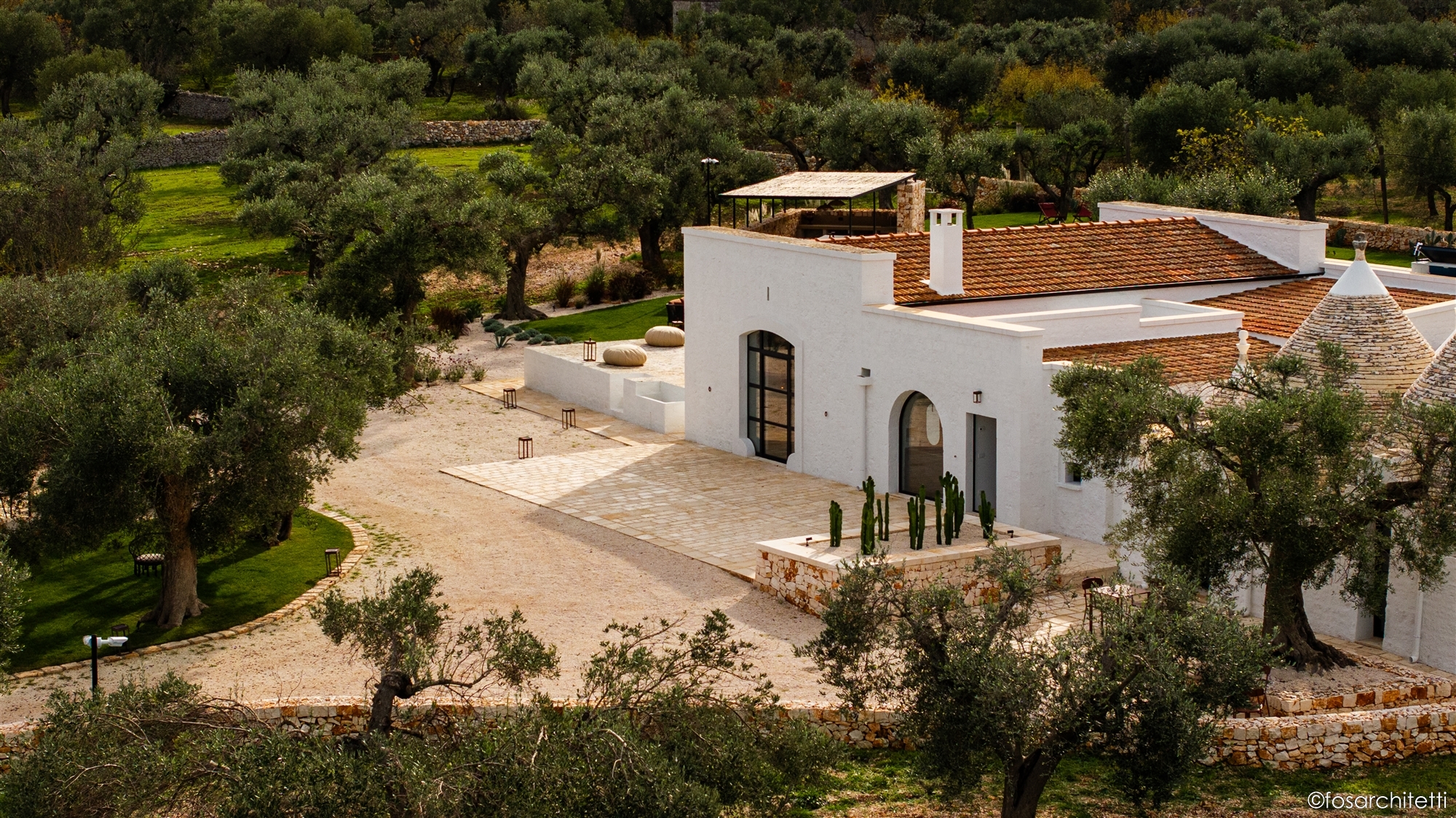 Immerso nelle campagne di Castellana Grotte, il progetto di restauro e rifunzionalizzazione di questo complesso di trulli interpreta l’architettura rurale pugliese come esperienza di ospitalità esclusiva.