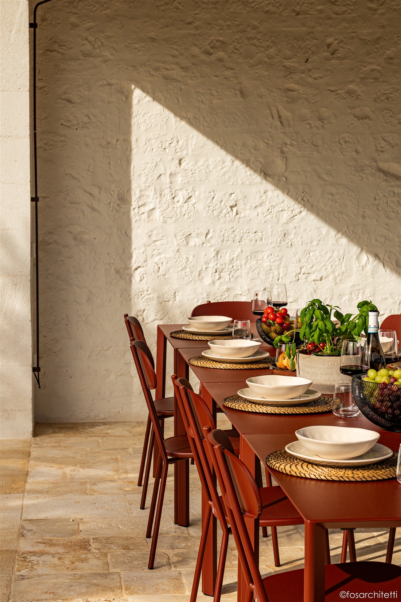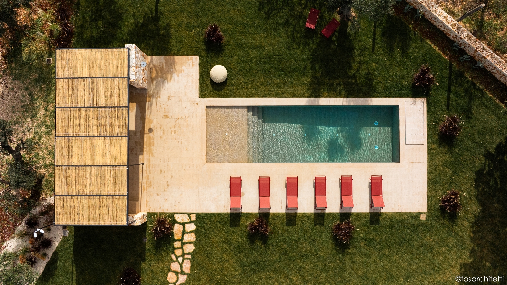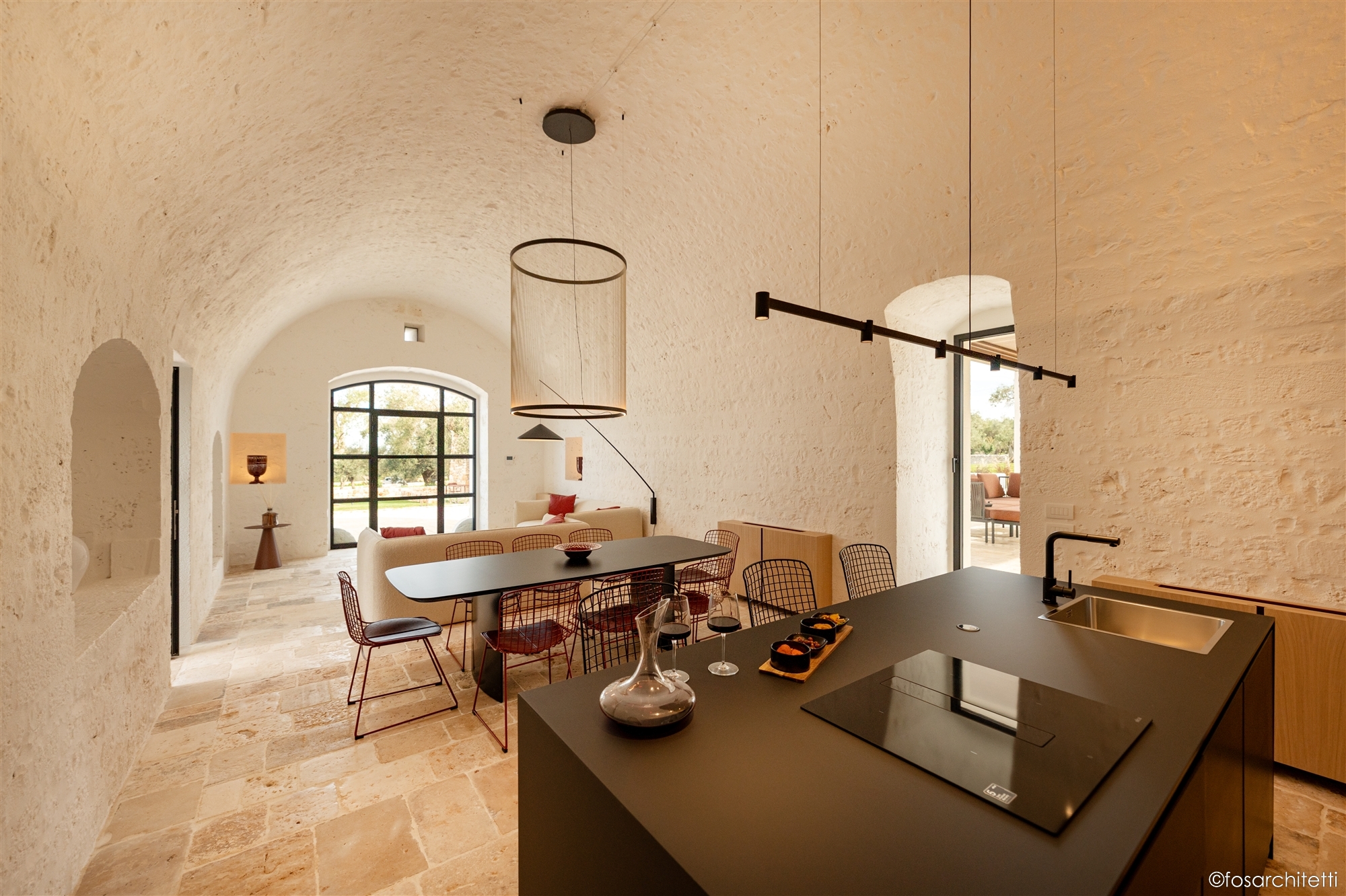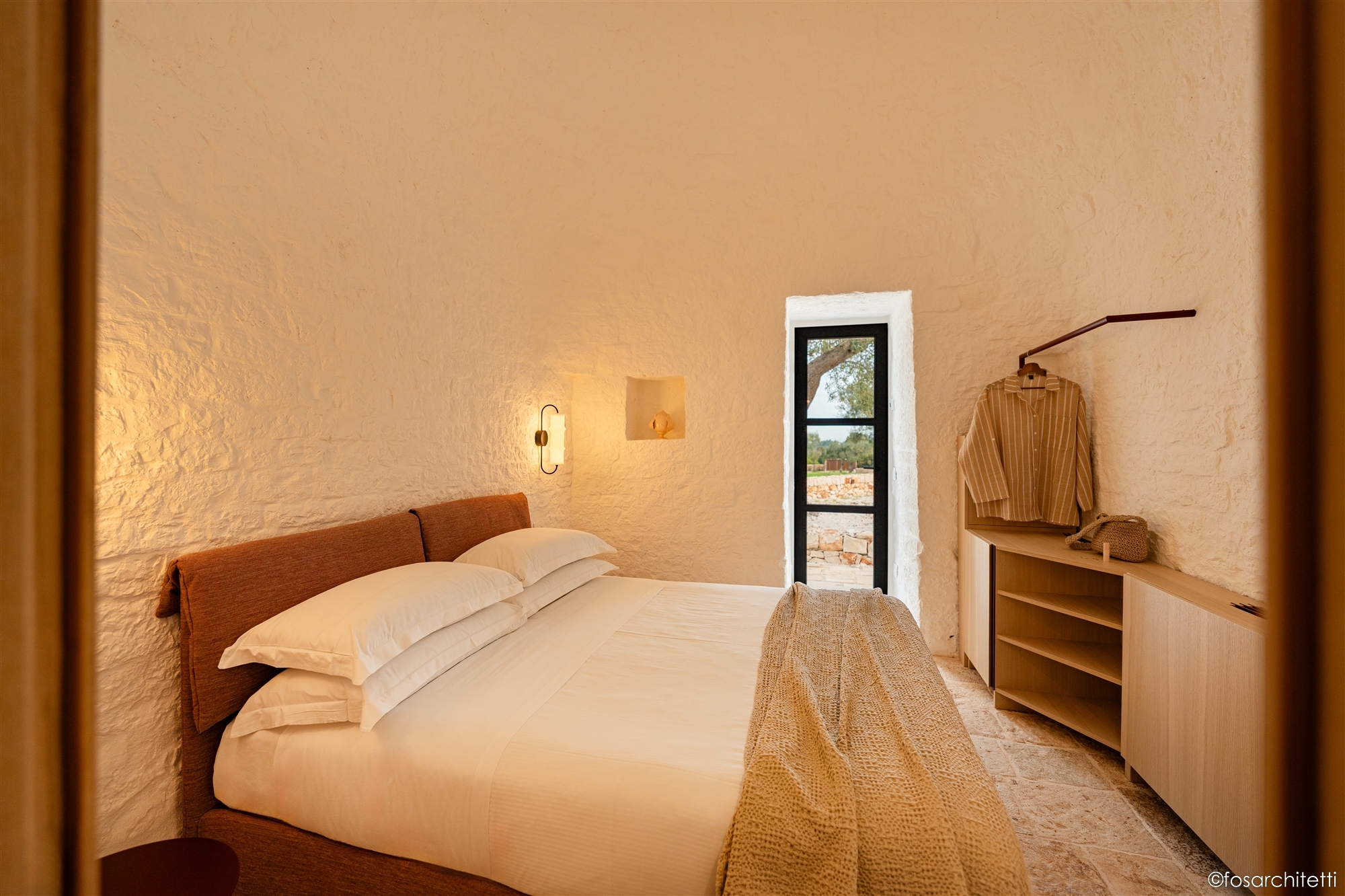 Immerso nelle campagne di Castellana Grotte, il progetto di restauro e rifunzionalizzazione di questo complesso di trulli interpreta l’architettura rurale pugliese come esperienza di ospitalità esclusiva.