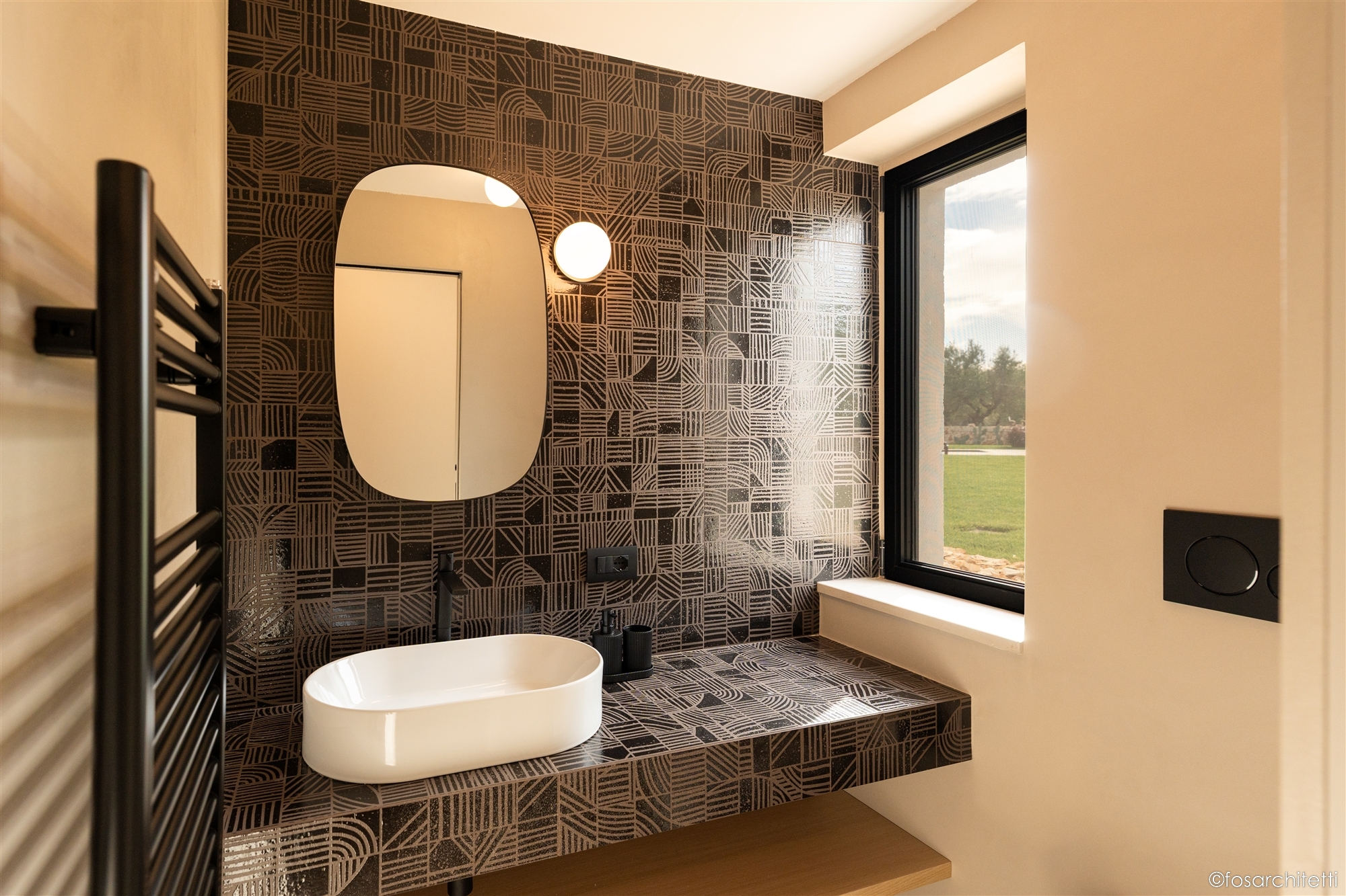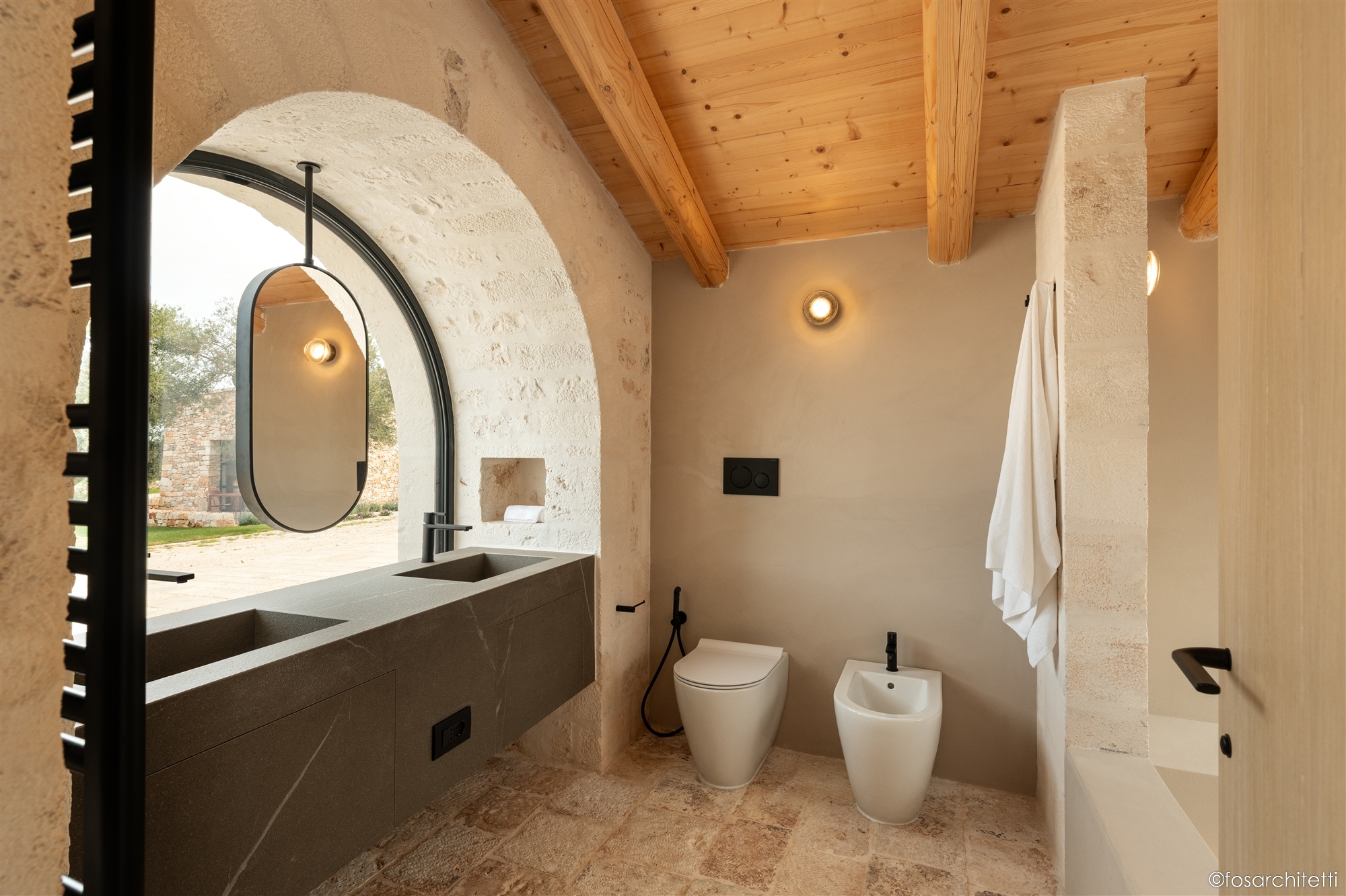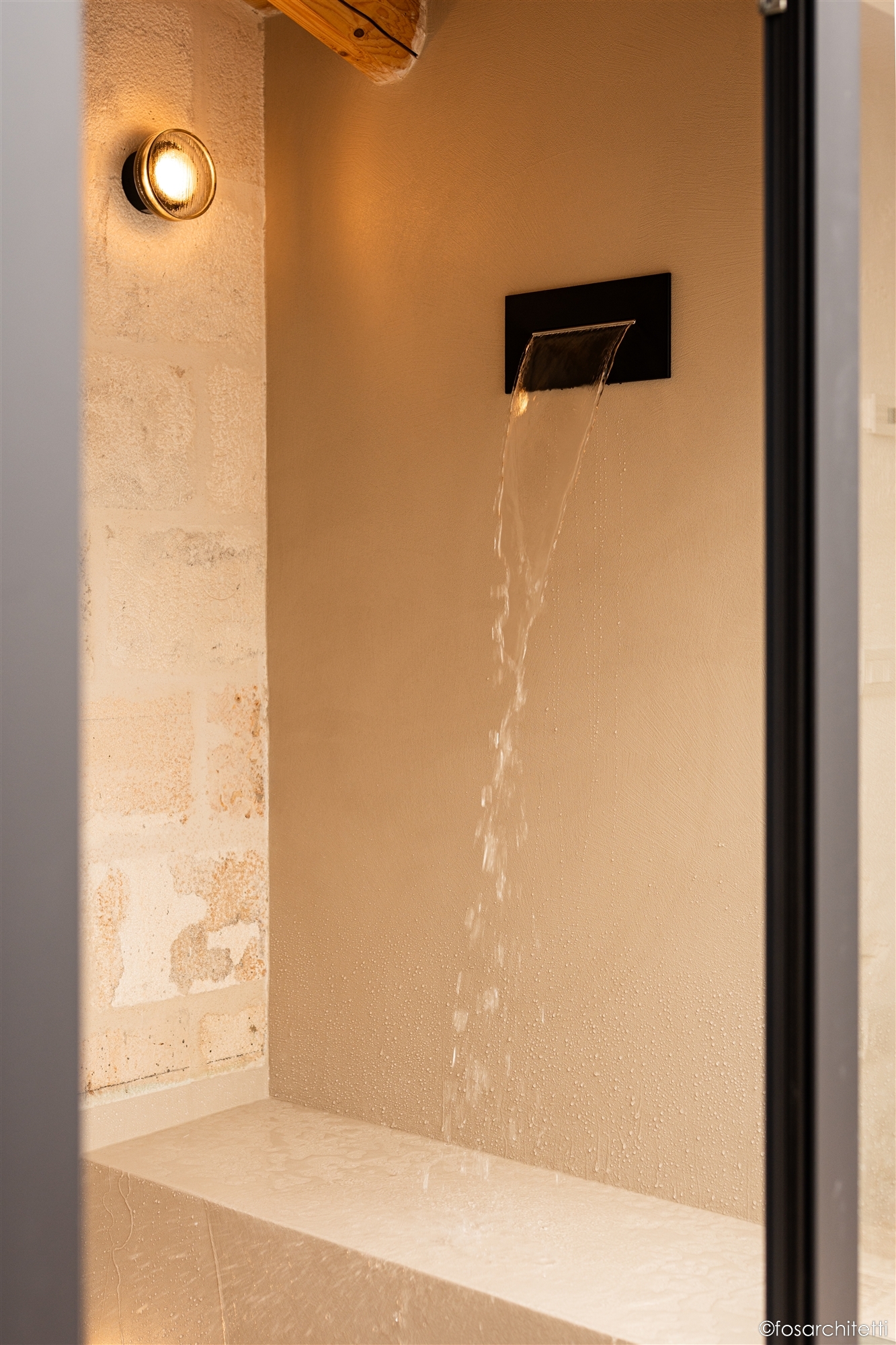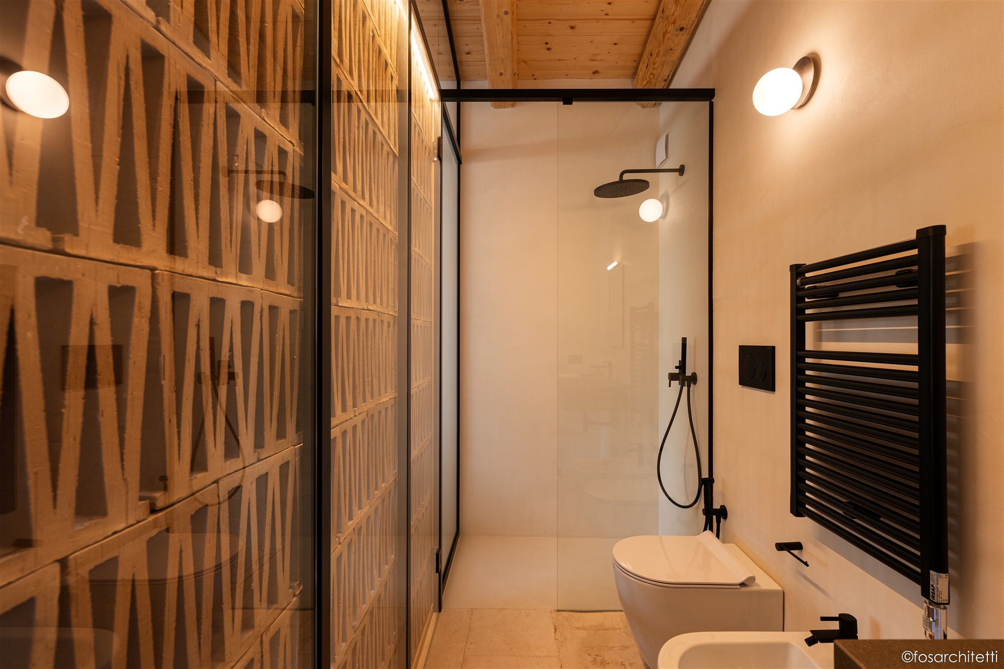 Il recupero delle murature in pietra e delle volte originarie restituisce l’autenticità del luogo, mentre un linguaggio progettuale contemporaneo introduce ambienti essenziali, raffinati e calibrati sul comfort. Gli interni, definiti da arredi su misura, palette cromatiche essenziali e materiali sobri creano un dialogo equilibrato tra passato e presente.