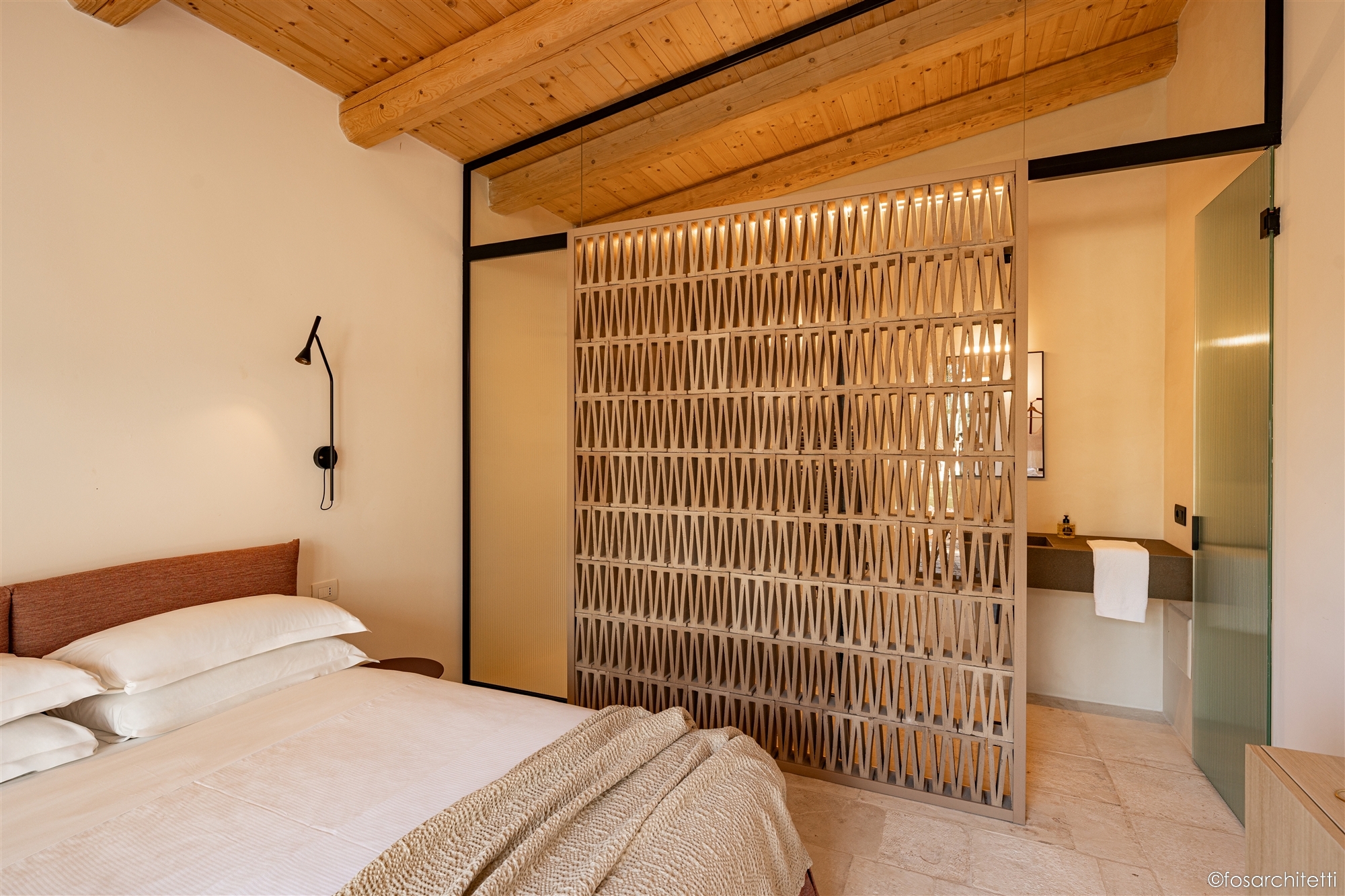 Pensata come residenza per il turismo di alto livello, la struttura offre spazi intimi e curati, in cui la semplicità diventa lusso e ogni dettaglio contribuisce a un’esperienza abitativa immersiva. Il paesaggio agricolo circostante, preservato e valorizzato, entra a far parte del progetto, rafforzando il legame profondo tra architettura, natura e identità del territorio.